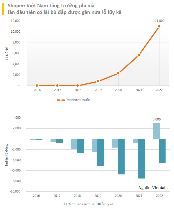 Từ năm 2020, Shopee đã bắt đầu giảm lỗ và đến năm 2022, sàn thương mại điện tử này đã hái "quả ngọt" khi doanh thu tăng trưởng phi mã lên gần 11.000 tỷ đồng, tăng 92.2% so với cùng kỳ năm 2021. Đồng thời, sau nhiều năm hoạt động không có lời, vào năm 2022, Shopee Việt Nam đã có mức lợi nhuận sau thuế đạt hơn 3.000 tỷ đồng, giảm lỗ lũy kế xuống còn 4.500 tỷ đồng.