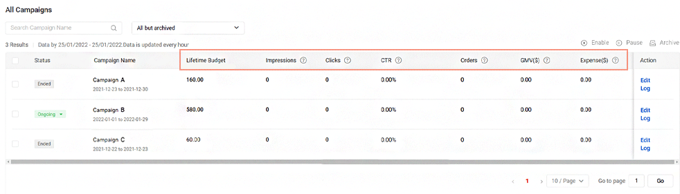 You can monitor and edit your Facebook ads campaign performance directly on Shopee seller center. This page shows a quick broad summary of your account performance. There are 5 important metrics you need to check, it can help you analyse all their activity to understand what works well and how you can improve your ads campaign.