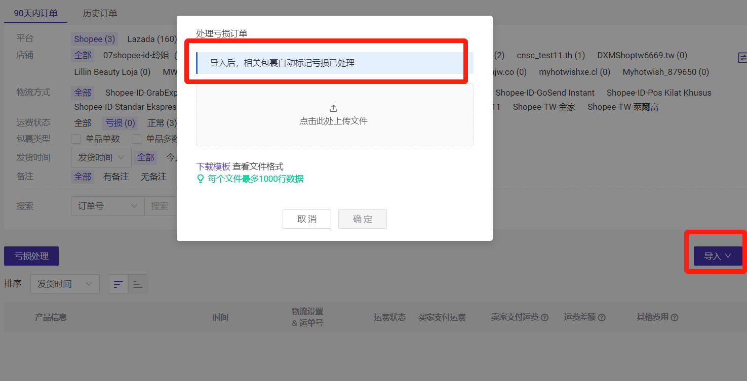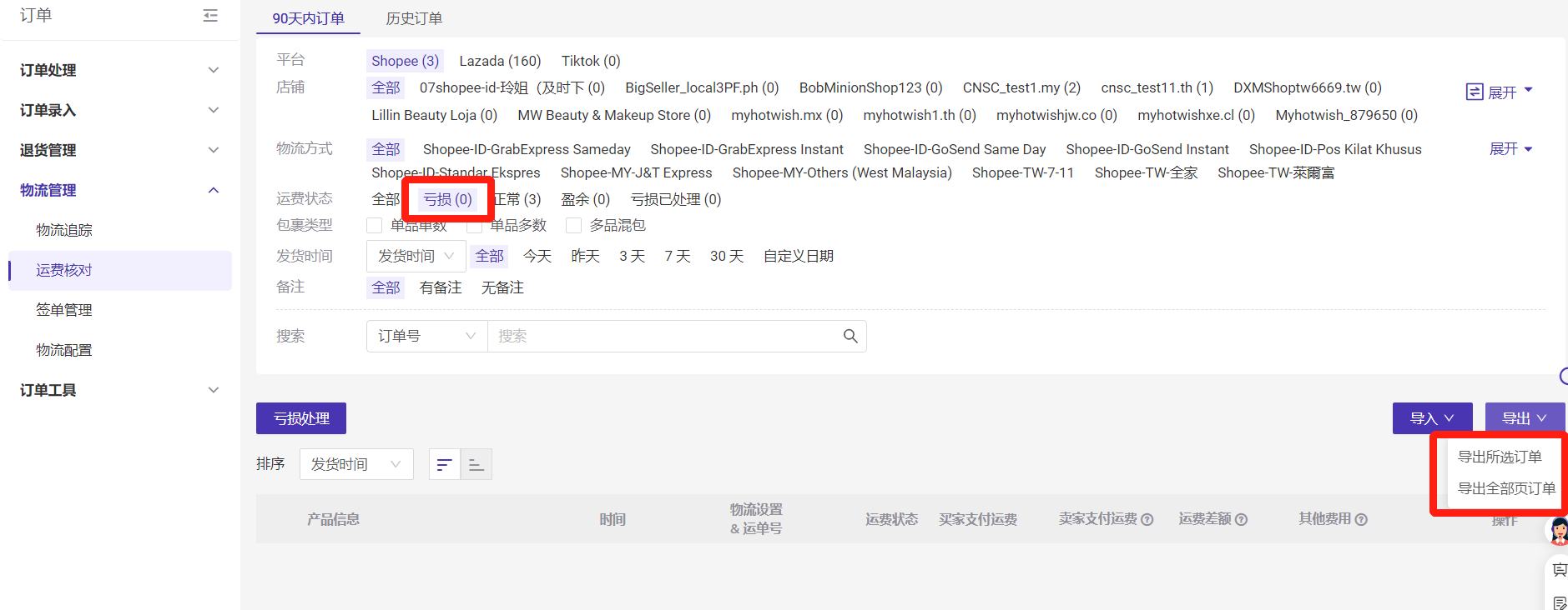 使用运费管理功能,您可以查看订单实际支付的运费和平台的预估运费是否一致,避免因为运费差太大而导致亏损。并且BigSeller还提供导出功能,您可以将亏损订单导出到表格,进行整理后申诉索赔。