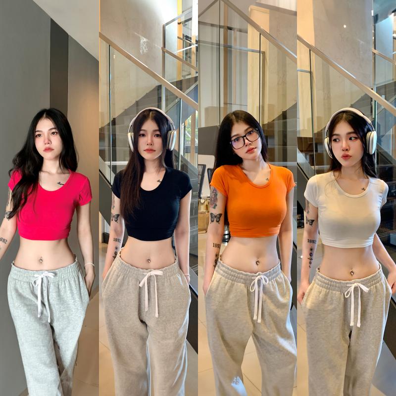 🎈สินค้า: SpinnyHouse ครอปแขนสั้น คอกลม ผ้าเรย่อน ยืดเยอะม้าก ผ้าไม่หนา รุ่น ครอปเรียบ B-045-3-AAAAA