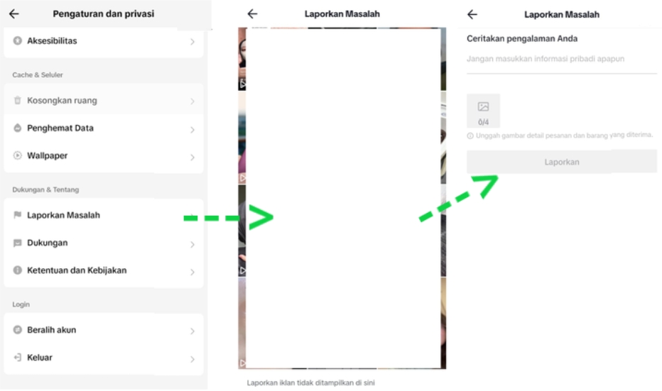 - Klik [Laporkan] , Ikuti langkah-langkah selanjutnya hingga laporan terkirim ke TikTok