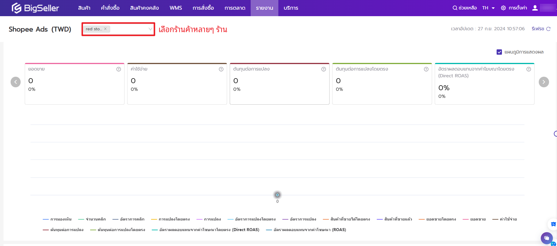 หลังจากทำโฆษณา ผู้ขายควรตรวจสอบข้อมูลโฆษณาอย่างสม่ำเสมอเพื่อประเมินประสิทธิภาพโฆษณาและทำการปรับเปลี่ยนตามที่จำเป็น หากคุณมีร้านค้า Shopee หลายๆ ร้าน คุณจะต้องเข้าสู่ระบบแพลตฟอร์มเพื่อตรวจสอบข้อมูลแบบทีละร้านค้า แบบนี้มักต้องใช้การรวมข้อมูลจากหลายแพลตฟอร์ม ซึ่งฟังก์ชัน Shopee Ads ของ BigSeller จะสามารถตอบโจทย์ความต้องการนี้ โดยผู้ใช้สามารถดูการวิเคราะห์ข้อมูลโฆษณาของ Shopee หลายร้านค้าในที่เดียวได้อย่างสะดวก รวมถึงอัตราการคลิก อัตราการแปลง และค่าใช้จ่ายในการโฆษณา ซึ่งช่วยให้ผู้ขายสามารถหากลยุทธ์การโฆษณาที่ดีที่สุดได้อย่างรวดเร็ว