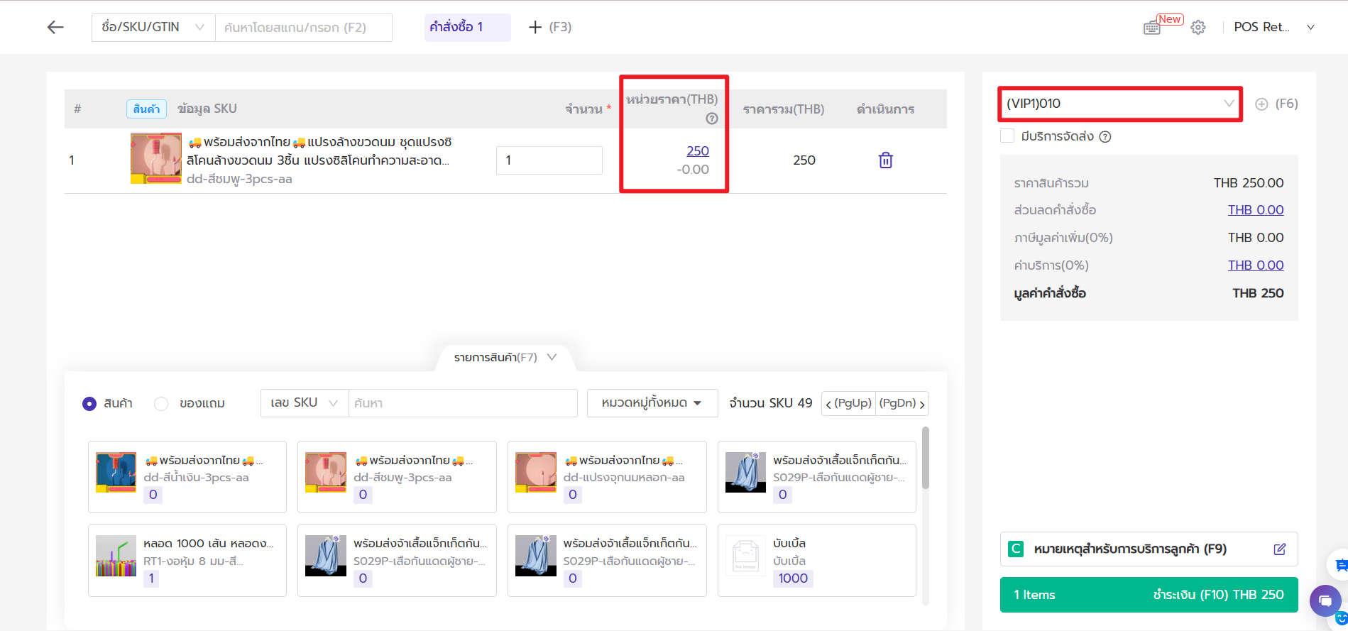 - ต่อมาสร้างราคาของสินค้าให้กับแต่ละระดับลูกค้า เช่น สินค้ารองเท้า ขายให้ระดับ VIP1 จะเป็นราคา 250 บาท, VIP2 245 บาท