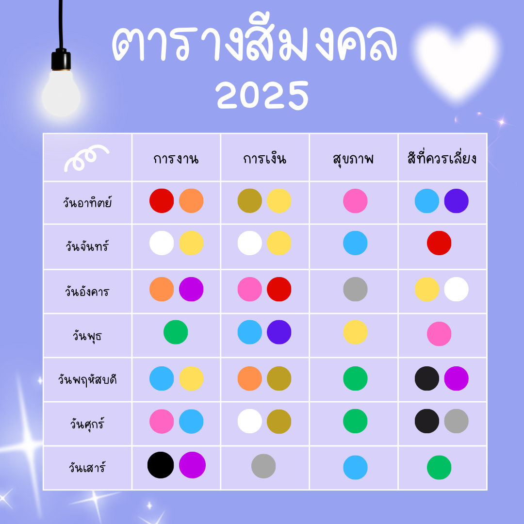 สีมงคลประจำวันในปี 2025: ใส่สีให้ถูกโฉลก เสริมดวงรับปีใหม่!