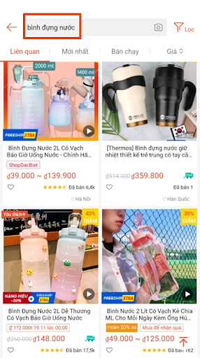 a. Ví dù tìm theo từ khóa sản phẩm trên Shopee