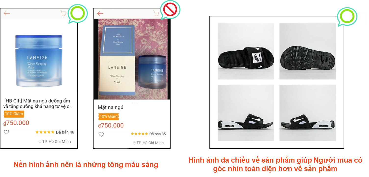 Ví dụ về việc nên và không nên khi đăng hình ảnh sản phẩm