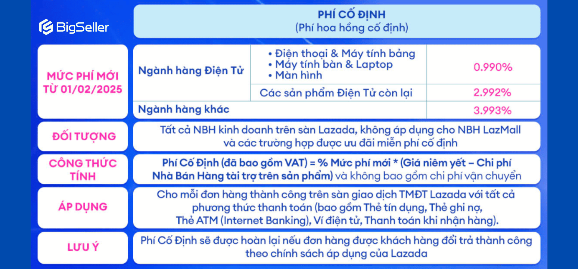 Kể từ ngày 01/02/2025, phía Lazada đã có thông báo chính thức áp dụng mức phí mới cho phí cố định