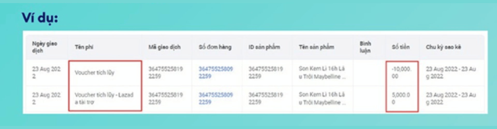 - Voucher tích lũy mà Nhà bán hàng tài trợ = Voucher tích lũy - Voucher tích lũy - Lazada tài trợ