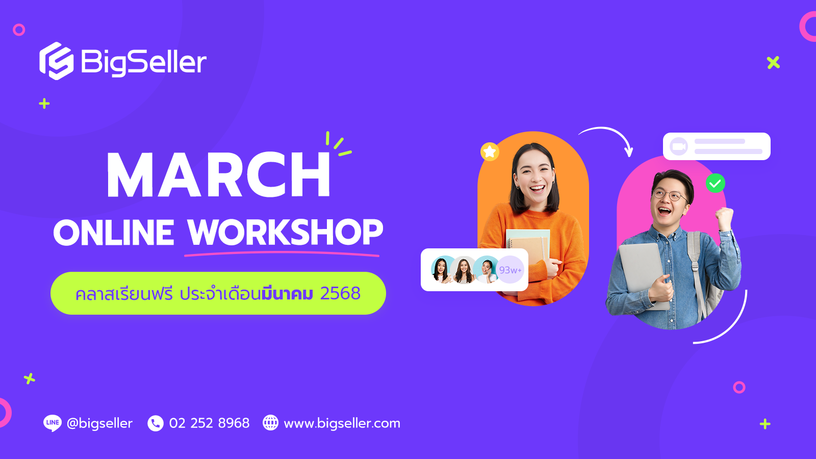 อบรมประจำสัปดาห์ตลอดเดือนมีนาคม เพื่อช่วยเหลือผู้ขายที่พึ่งผูกร้านค้าเข้ามาใช้งานระบบ Bigseller ใหม่เพื่อพัฒนาร้านค้าและจัดการออเดอร์อย่างเป็นระบบ โดยสามารถเลือกคลาสเรียนที่เหมาะสมและลงทะเบียนเข้าเรียนฟรีได้ตลอดทั้งเดือน