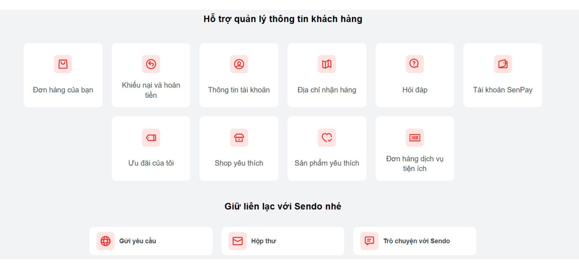 Bạn có thể chủ động gửi yêu cầu liên quan đến trả hàng hoàn tiền, thanh toán, thông tin đơn hàng, các khiến nại, góp ý về Sendo Farm,…