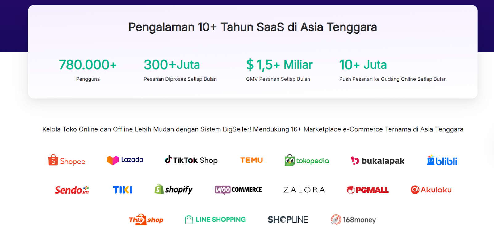 Untuk membantu para penjual lokal menavigasi lanskap persaingan ini, BigSeller, sistem SaaS yang canggih dirancang untuk menyederhanakan manajemen e-commerce multi-saluran. BigSeller dengan cepat menjadi solusi ERP e-commerce andalan bagi para penjual di Asia Tenggara karena prosesnya yang sangat otomatis, antarmuka yang mudah digunakan, dan fitur-fitur yang tangguh. Platform ini telah bermitra dengan lebih dari 30 platform e-commerce terkemuka dan lebih dari 600 penyedia layanan logistik terkemuka di seluruh wilayah. Dengan volume pesanan harian yang melebihi 4 juta dan nilai transaksi tahunan lebih dari $30 miliar, BigSeller telah mendapatkan kepercayaan dari lebih dari 420.000 penjual e-commerce lokal.