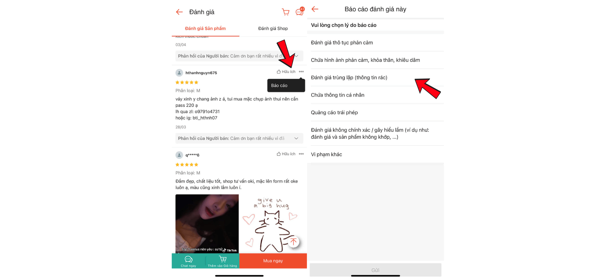 Về việc người bán giả danh người mua để tạo các lượt bán lượt đánh giá ảo nếu bạn phát hiện thì có thể báo cáo vi phạm về Shopee như sau: