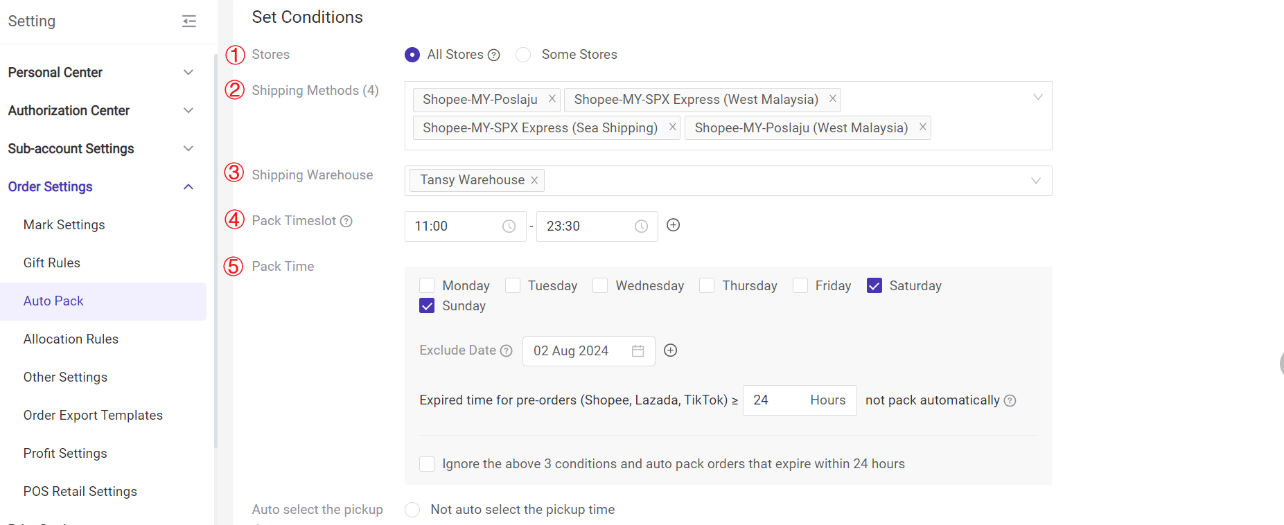 (1) Auto Pack: By enabling Auto Pack features, if the order meets the conditions you set, BigSeller will automatically pack the order for you. This can reduce the probability of delayed delivery and the probability of order cancellation, which can be very helpful under current DTS policy.