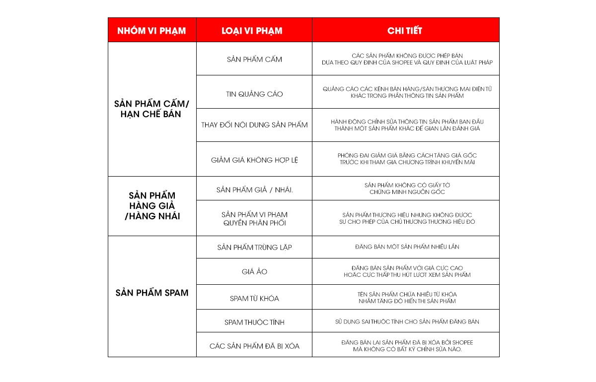 Rà soát tất cả sản phẩm theo checklist Shopee