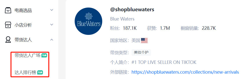 嘀嗒狗、FastMoss等带货达人,同时分有带货达人广场、达人排行榜,我们可以通过数据分析筛查自己需要的达人。