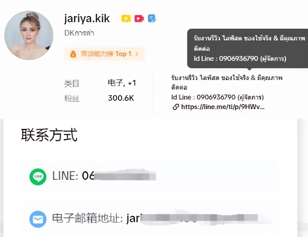 达人简介以及TikTok达人关联的一些第三方账号。