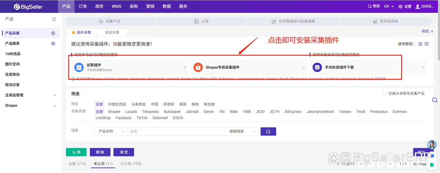 支持采集Shopee,TikTok,Lazada,淘宝,拼多多,天猫,1688的产品批量上架到TikTok店铺
