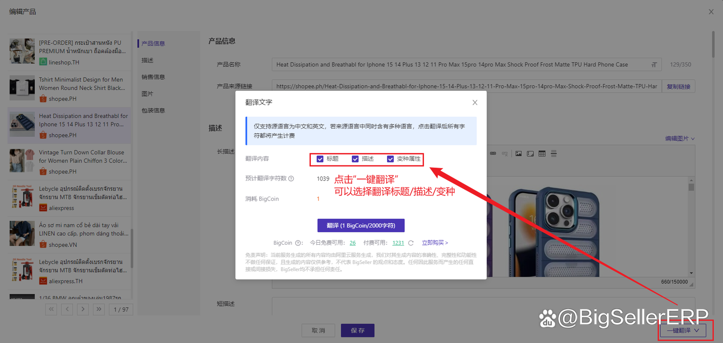 步骤五、多语言产品描述自动生成,产品标题自动监测,生成爆款标题