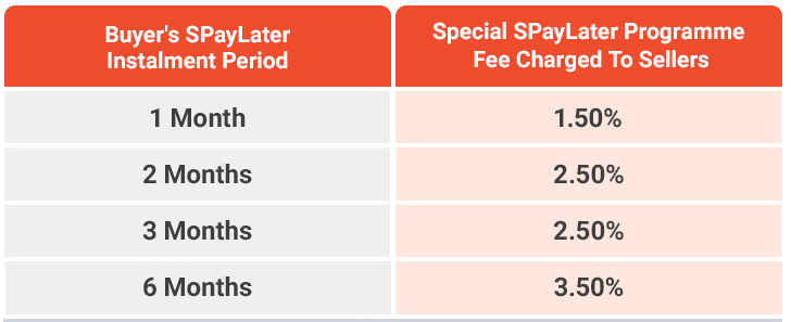 Shopee will charge an additional 2% transaction fee to sellers for completed SPayLater orders. And the programme fee differs depending on the instalment period that the buyers have selected.