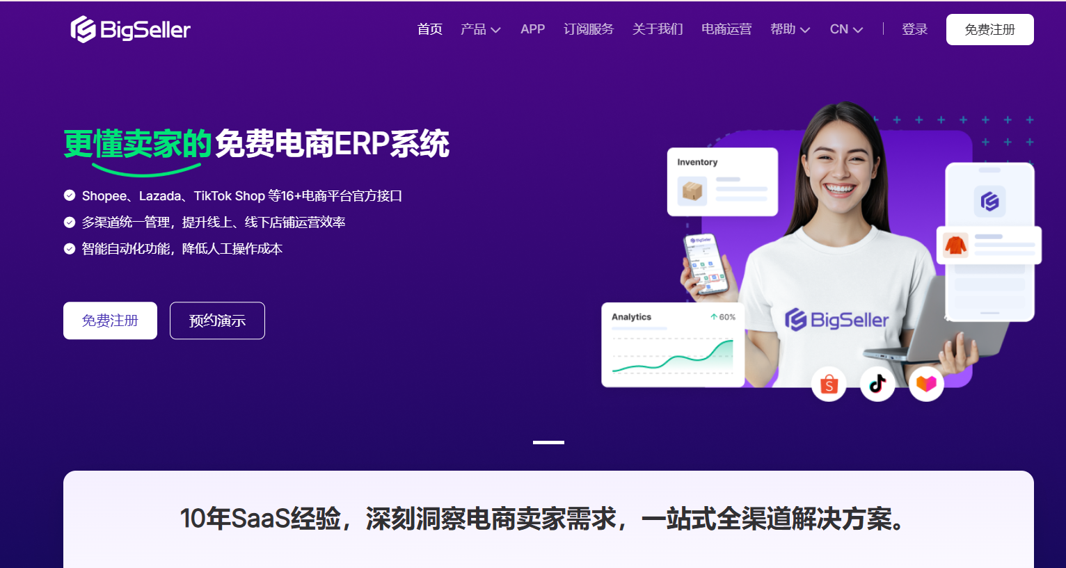 BigSeller是TikTok、Shopee、Lazada等东南亚电商平台官方对接的店铺管理系统,为电商卖家提供产品批量上架刊登,订单批量处理,多平台、多店铺库存同步,数据分析等功能,帮助卖家一站式管理本土店铺。