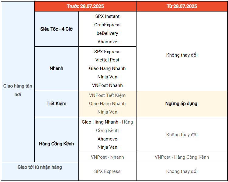 【QUAN TRỌNG】Sàn S sẽ NGỪNG áp dụng phương thức vận chuyển Tiết Kiệm vào 28/7/2025