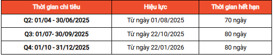 Điều kiện: Chi tiêu 2.500.000 VNĐ trong bất kỳ giai đoạn nào của quý: