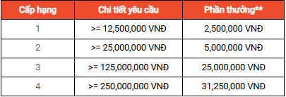 Điều kiện: Nếu bạn thăng hạng lên cấp tiếp theo* trong bất kỳ quý nào (Q2, Q3 hoặc Q4), bạn sẽ nhận được những ưu đãi hấp dẫn hơn. Xem thêm chi tiết tại bảng bên dưới.