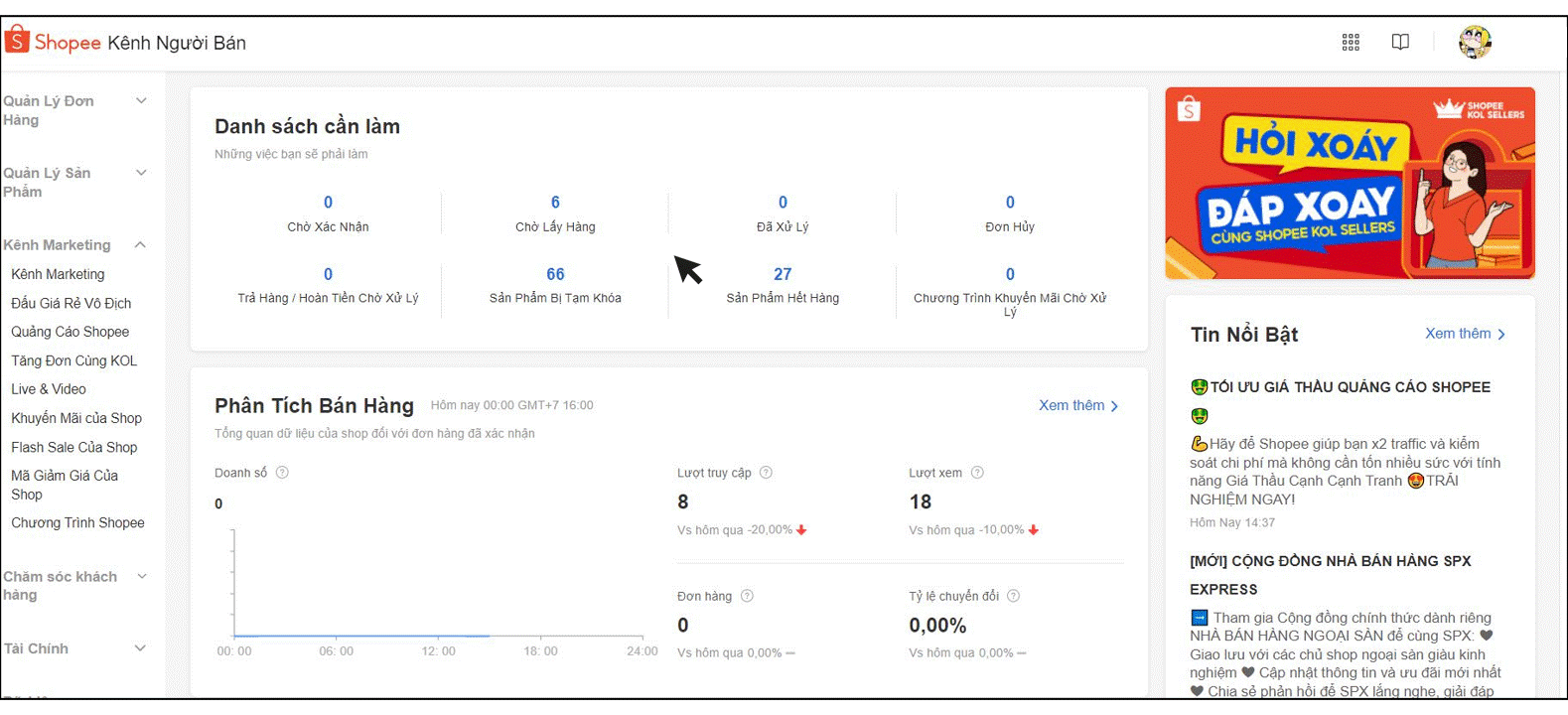 - Bước 1: Vào mục Kênh Marketing trên thanh Menu của Kênh Người Bán