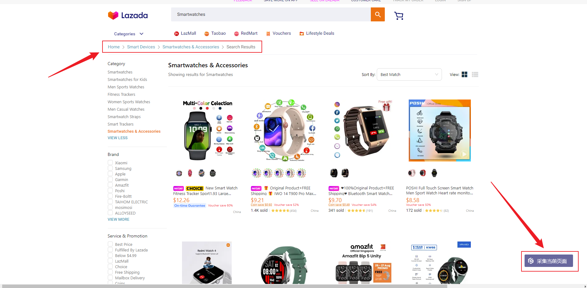 第三步:批量采集> 打开Lazada首页 > 进入店铺首页> 点击需要采集的类目 > 点击采集当前页