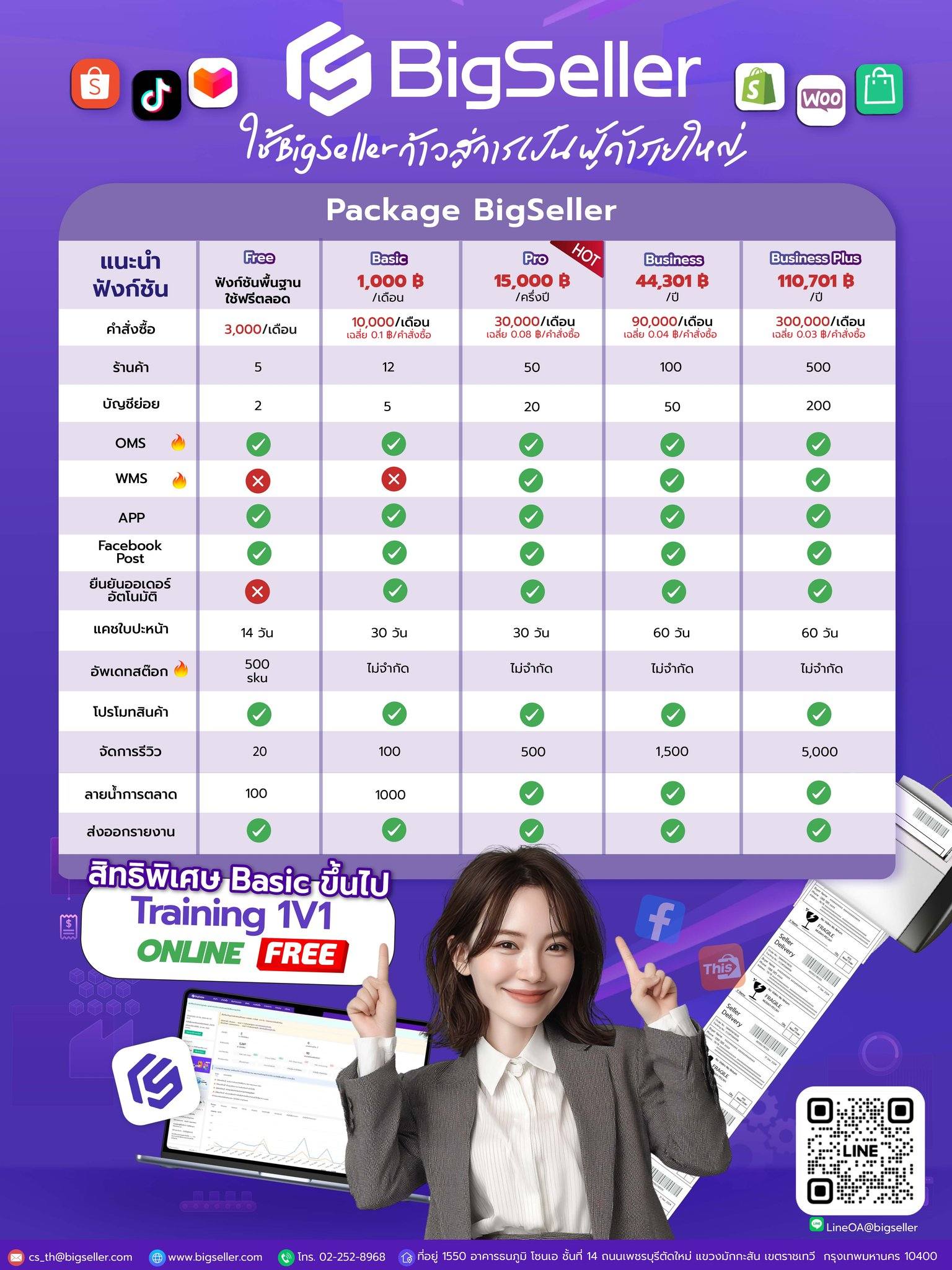 ไม่ว่าคุณจะเป็นผู้ขายรายใหม่ที่เพิ่งเริ่มต้น หรือเป็นธุรกิจขนาดใหญ่ที่ต้องการระบบบริหารหลายร้าน BigSeller ก็มีแพ็กเกจที่ตอบโจทย์ทุกระดับการเติบโตของธุรกิจออนไลน์ จุดเด่นคือ ราคาถูก ใช้งานง่าย ครอบคลุมหลายแพลตฟอร์ม และช่วยประหยัดเวลาในการจัดการ