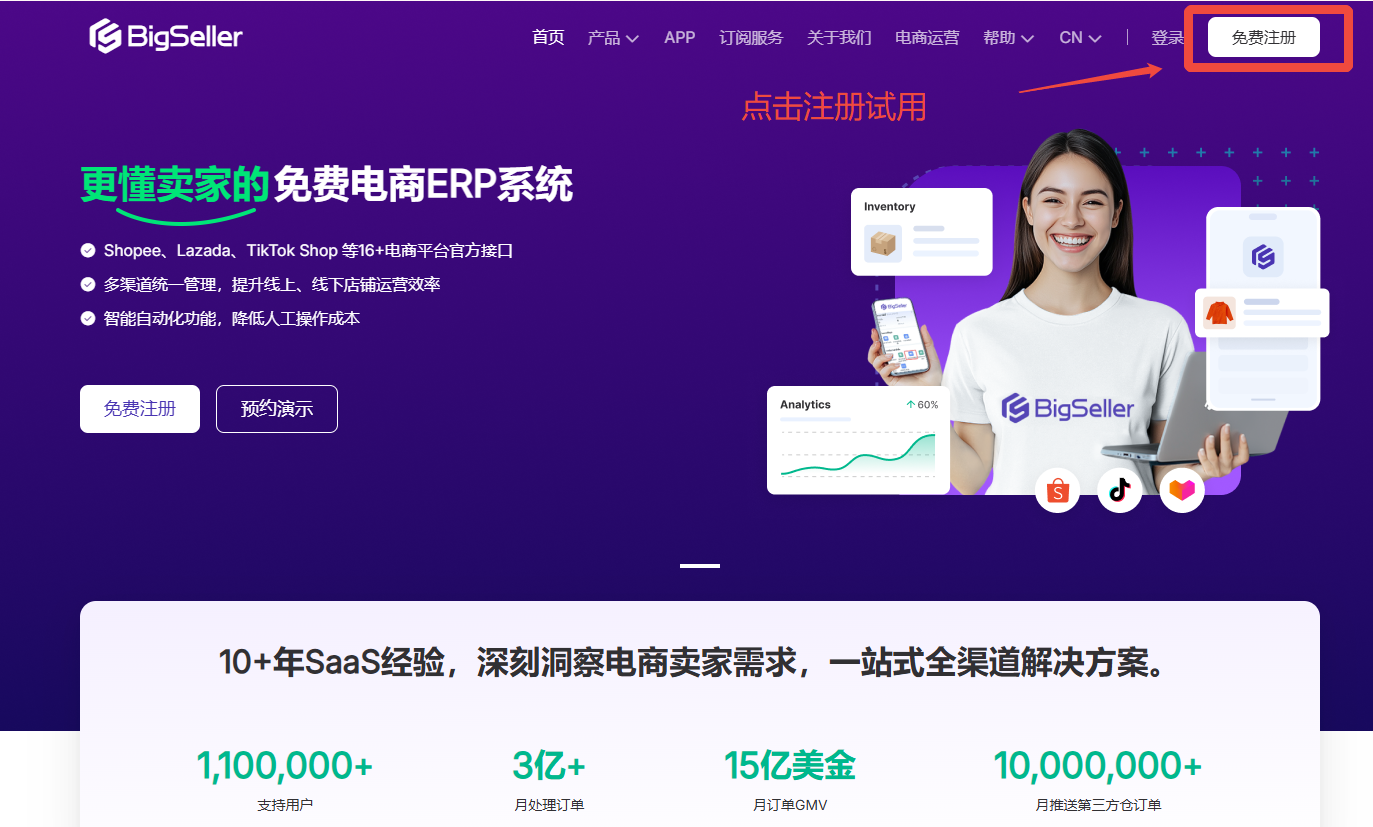 第一步:浏览器搜索BigSeller,注册BigSeller账号