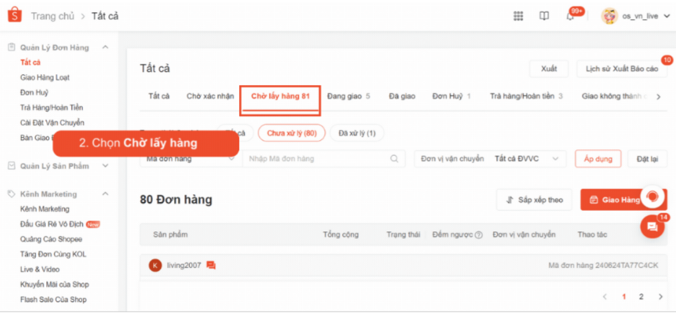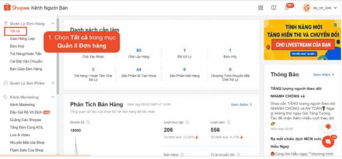 Bước 1: Chọn Tất cả trong Quản lý Đơn hàng tại seller center