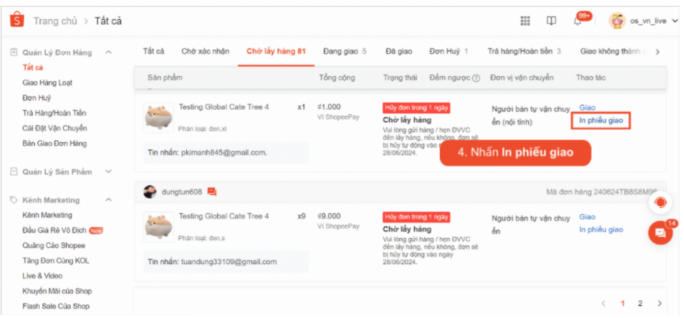 Bạn có thể in Phiếu gửi hàng Shopee trong Kênh Người bán theo các bước sau: