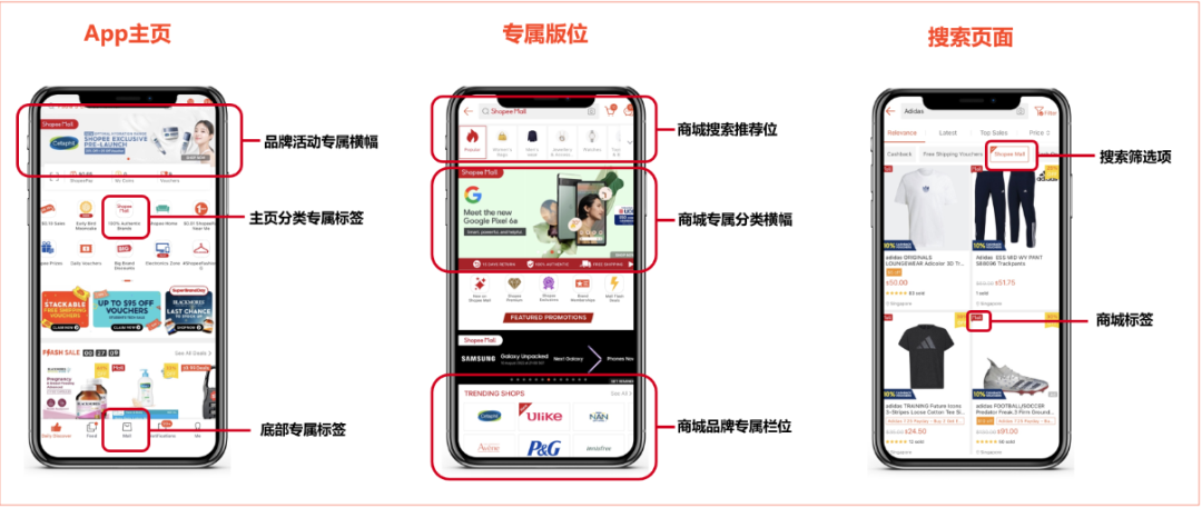 1. Shopee商城拥高曝光的专属位置,让买家轻松找到想要购买的品牌。