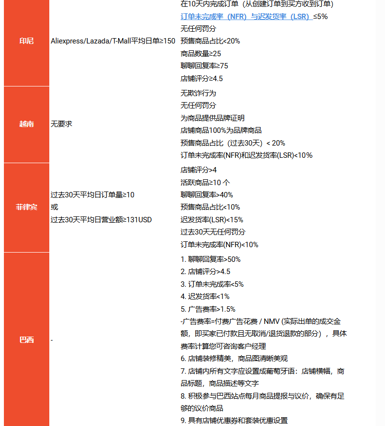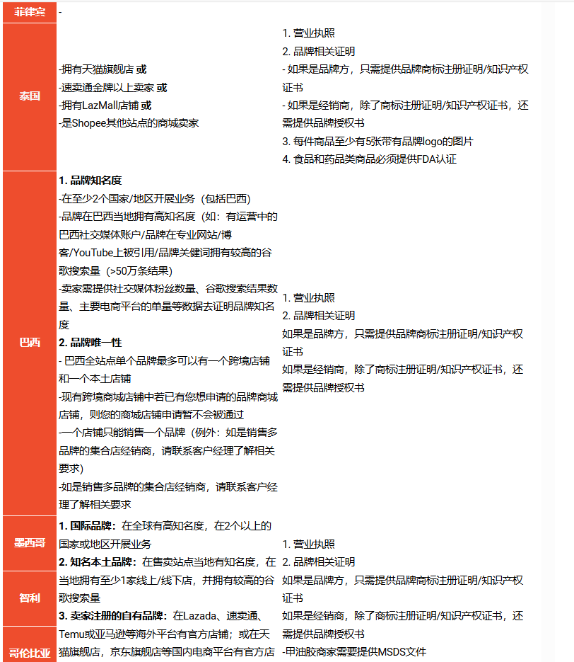 商城卖家有严格的入驻门槛,且不同站点的要求和入驻流程都不相同,主要包括品牌、店铺运营和商品刊登3个方面。