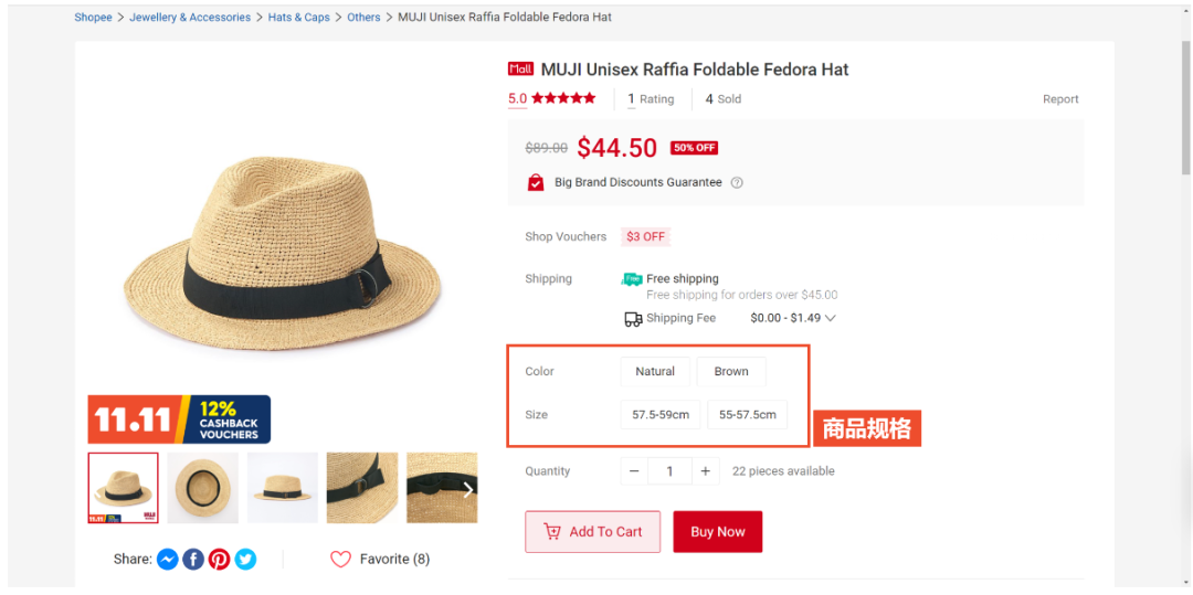 商品规格即同一件商品的不同选项。恰当的商品规格可以让买家在商品详情页面中选择商品的尺寸、颜色、款式或其他选择。