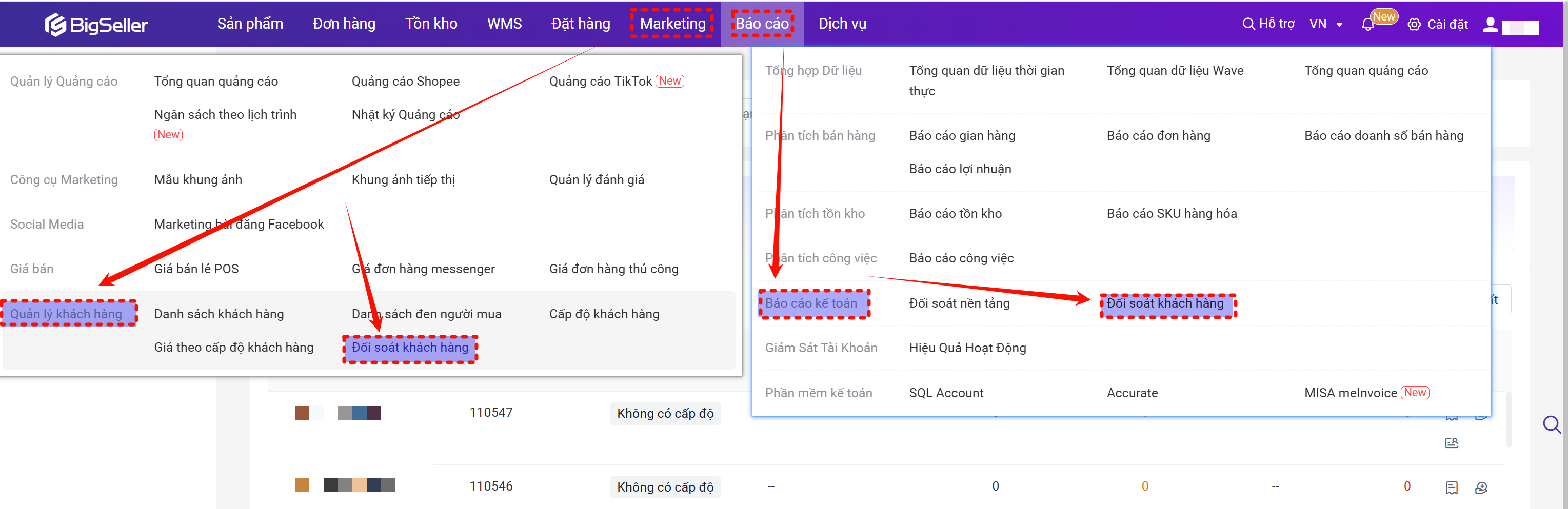 Có. BigSeller chính thức ra mắt tính năng đối soát khách hàng - quản lý công nợ khách hàng. Tính năng này đặc biệt phù hợp với mô hình bán buôn và phân phối (bán hàng công nợ), hỗ trợ trong đơn hàng thủ công và đơn hàng Messenger. Bạn có thể: