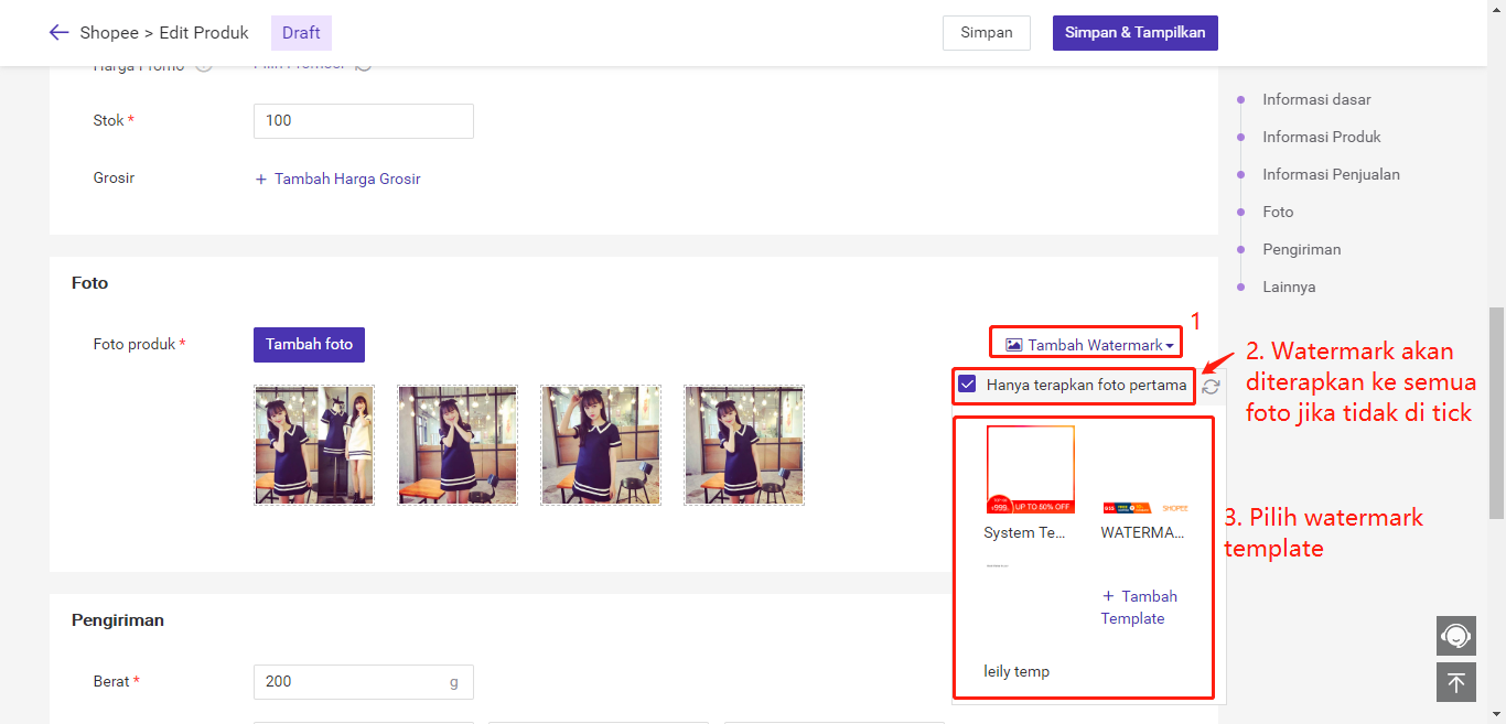 Hal yang sangat diperlukan bagi toko untuk melakukan promosi adalah menambahkan watermark pada gambar produk, ya bener, yaitu gambar yang ditambah watermark.