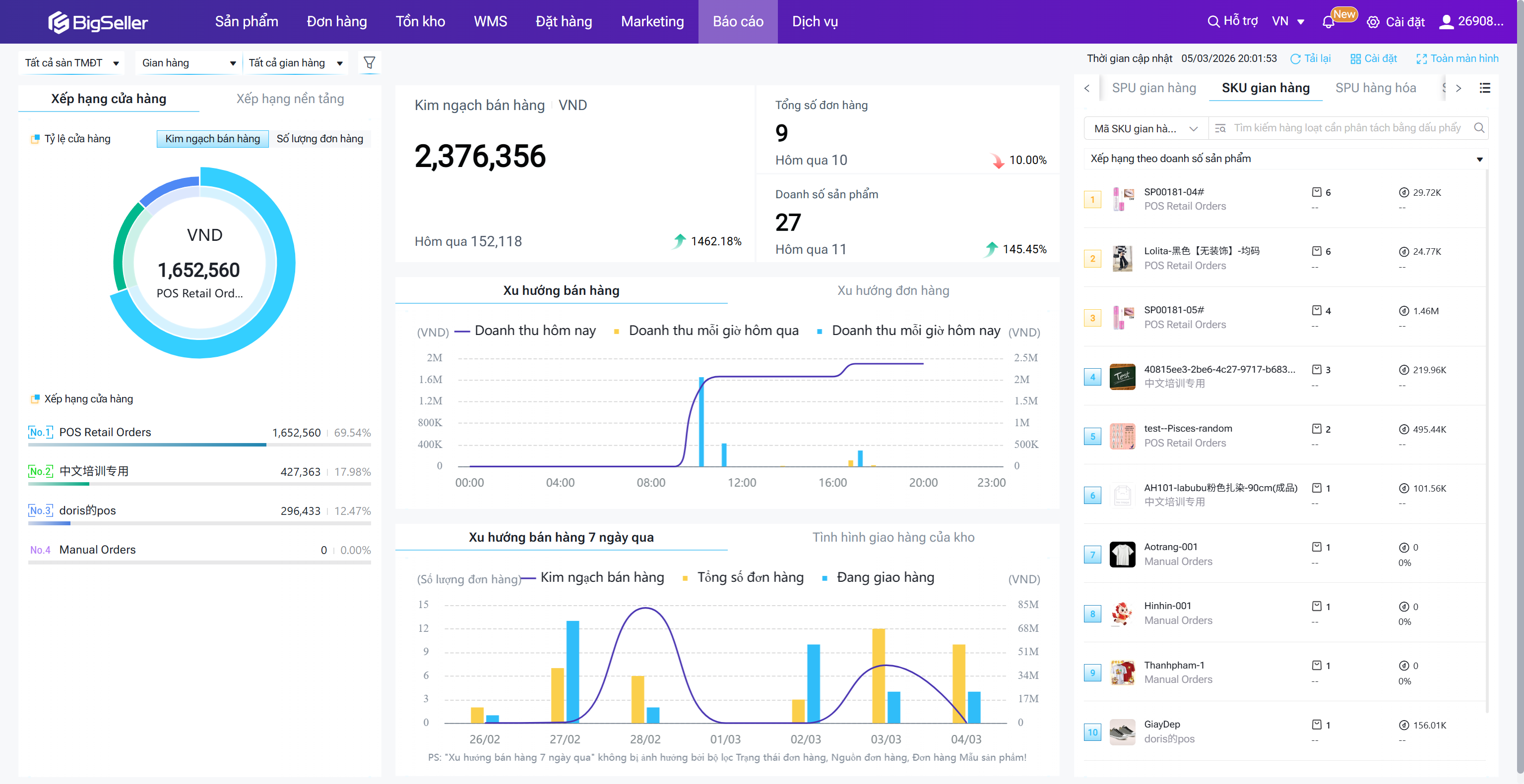 Thay vì thao tác rời rạc, BigSeller cho phép đồng bộ tồn kho giữa các sàn theo thời gian thực, quản lý đơn hàng tập trung trên một giao diện, theo dõi doanh thu và lợi nhuận theo từng kênh, giảm sai sót thủ công trong mùa cao điểm.
