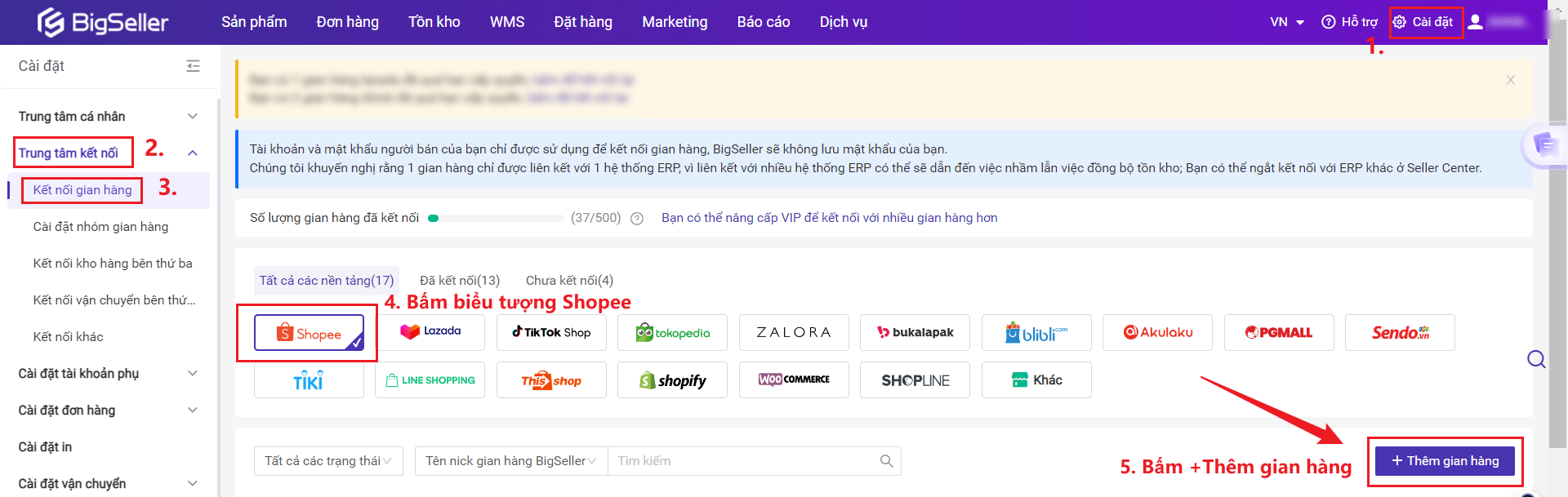 Bước 1: Kết nối gian hàng