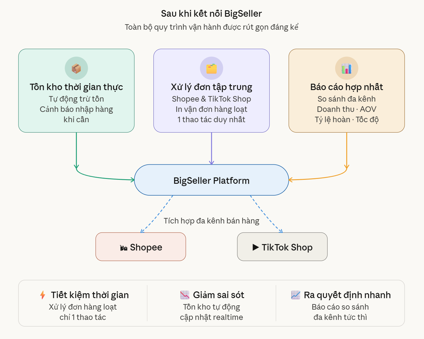 | Dữ liệu | Excel thủ công | BigSeller realtime |