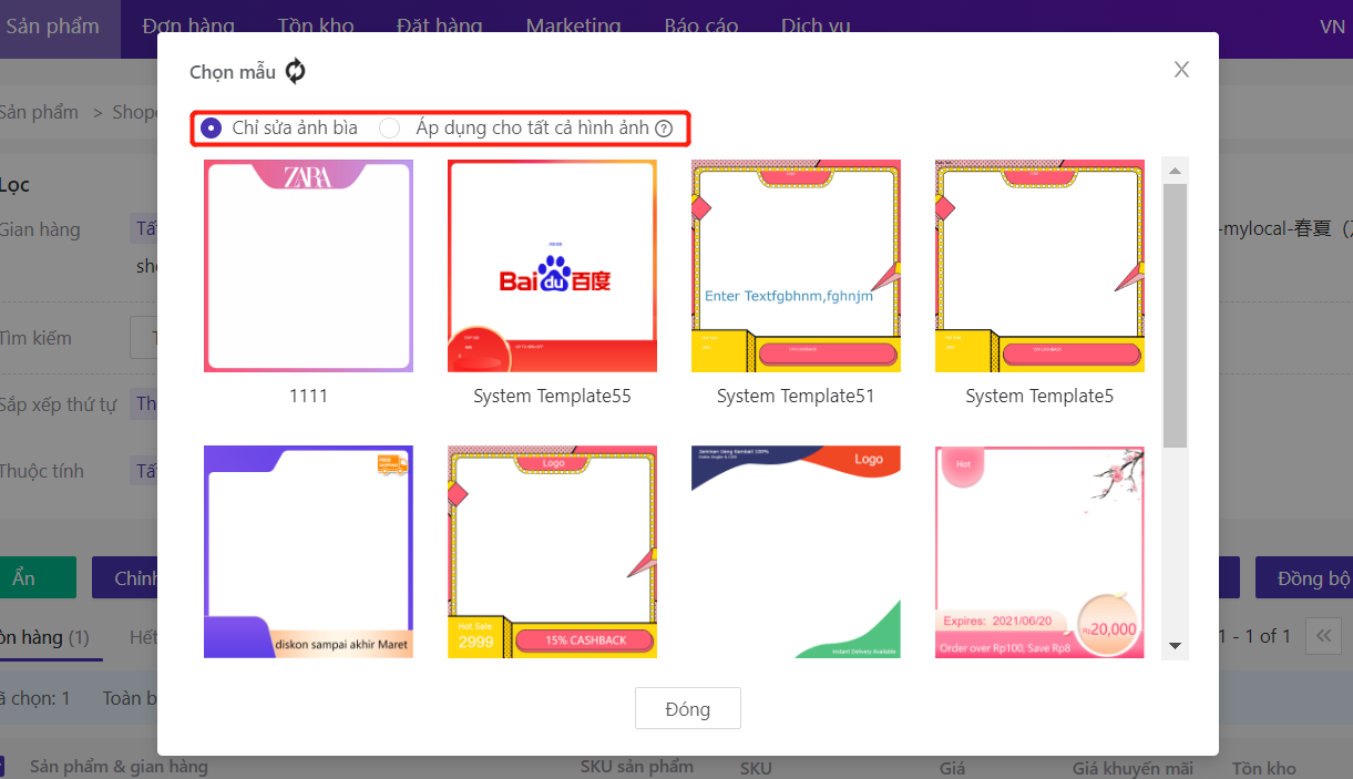 Thêm khung ảnh sản phẩṃ Shopee, Lazada, TikTok Shop