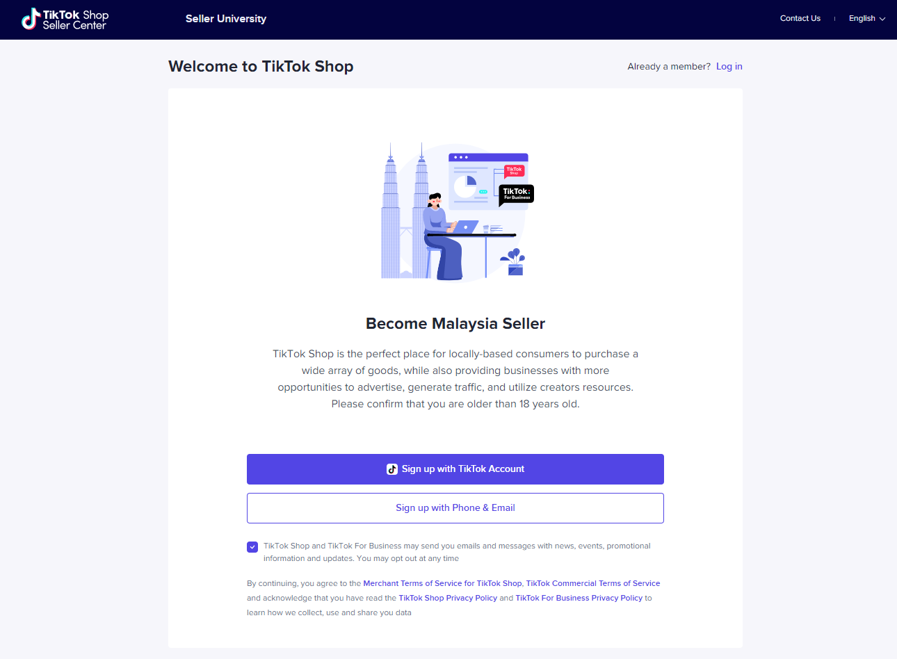 Step 1: Register a TikTok Shop accountGo to TikTok seller register page.