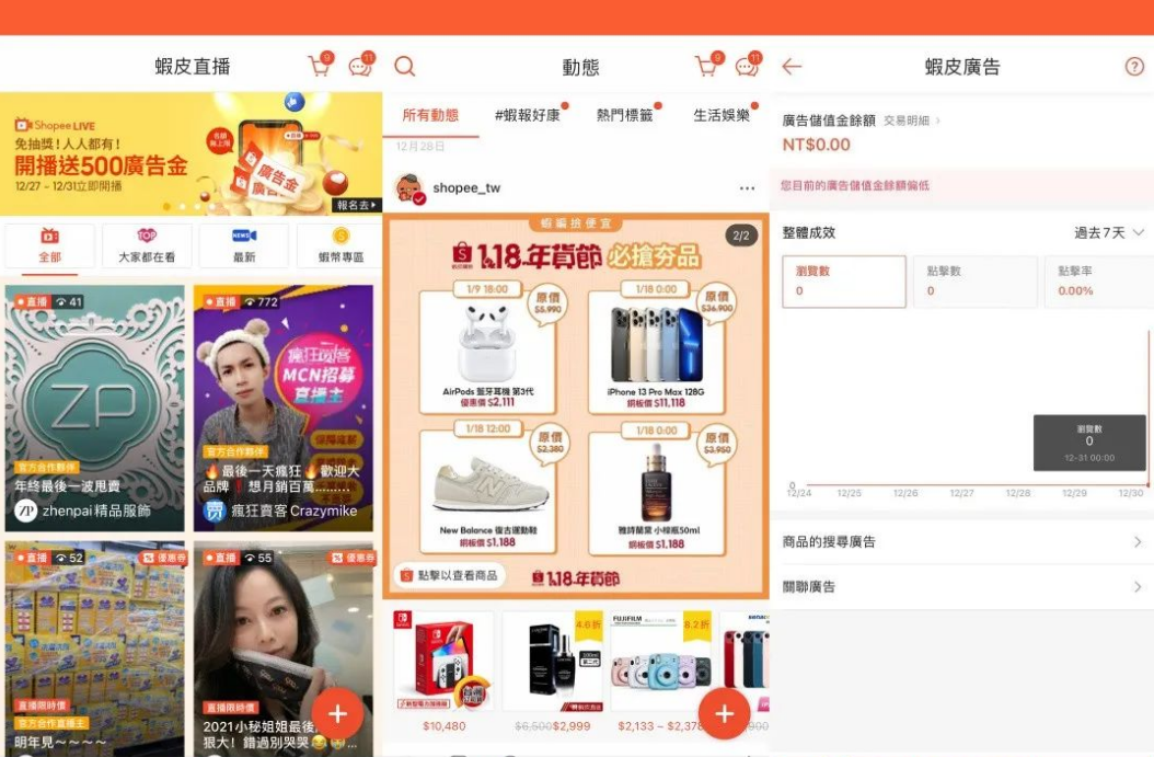 shopee有相应的付费推广工具,例如,广告,直播,feed。推广可以提高店铺的曝光度,增加流量。在Shopee平台上,有多种推广方式可供选择,比如购物广告、应用内广告、首页推荐等。通过选择适合自己店铺的推广方式,并合理地设置预算和投放时间,可以有效引导更多的消费者访问店铺。