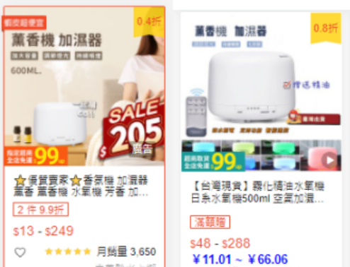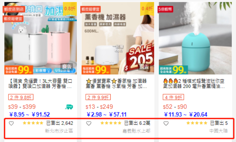 假设我们想买一款加湿器,Shopee搜索框搜索关键词加湿器,会出现很多款式的加湿器,出现的产品就是有了展限流量,主责是需要买家点击。