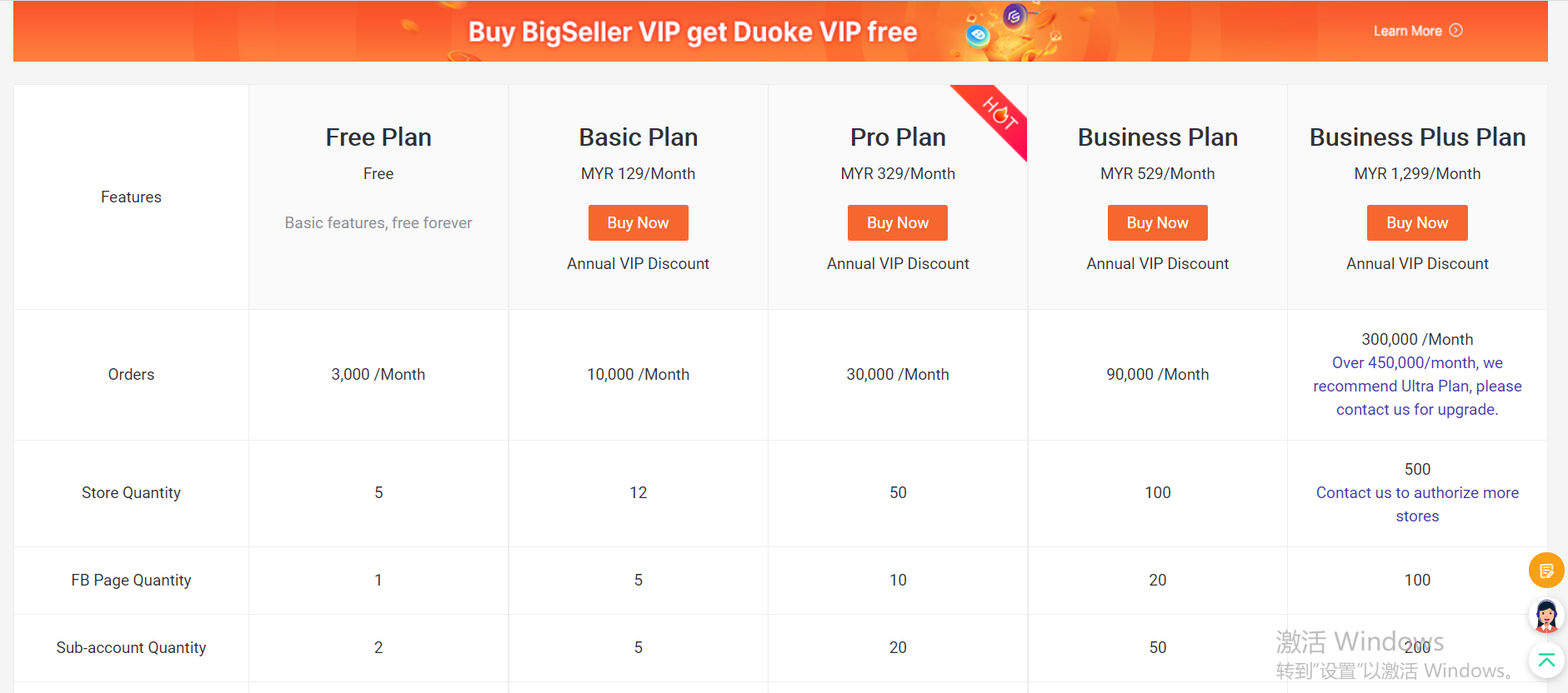 But at the same time, the paid version will also have more features for sellers, like more auhtorization stores and orders processing quota, the function access of "Wave" and "Scan to Send Image". The specific price of each version is from MYR 129/Month to MYR 1,299/Month. Just choose the corresponding version according to the actual situation of your store.