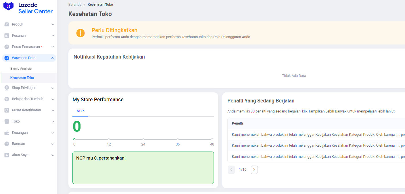 Jangan lupa untuk mengecek Kesehatan Toko Lazada bagi yang belum tahu dimana ikuti langkah berikut:Buka lazada seller center - pilih wawasan data - kemudian kesehatan toko