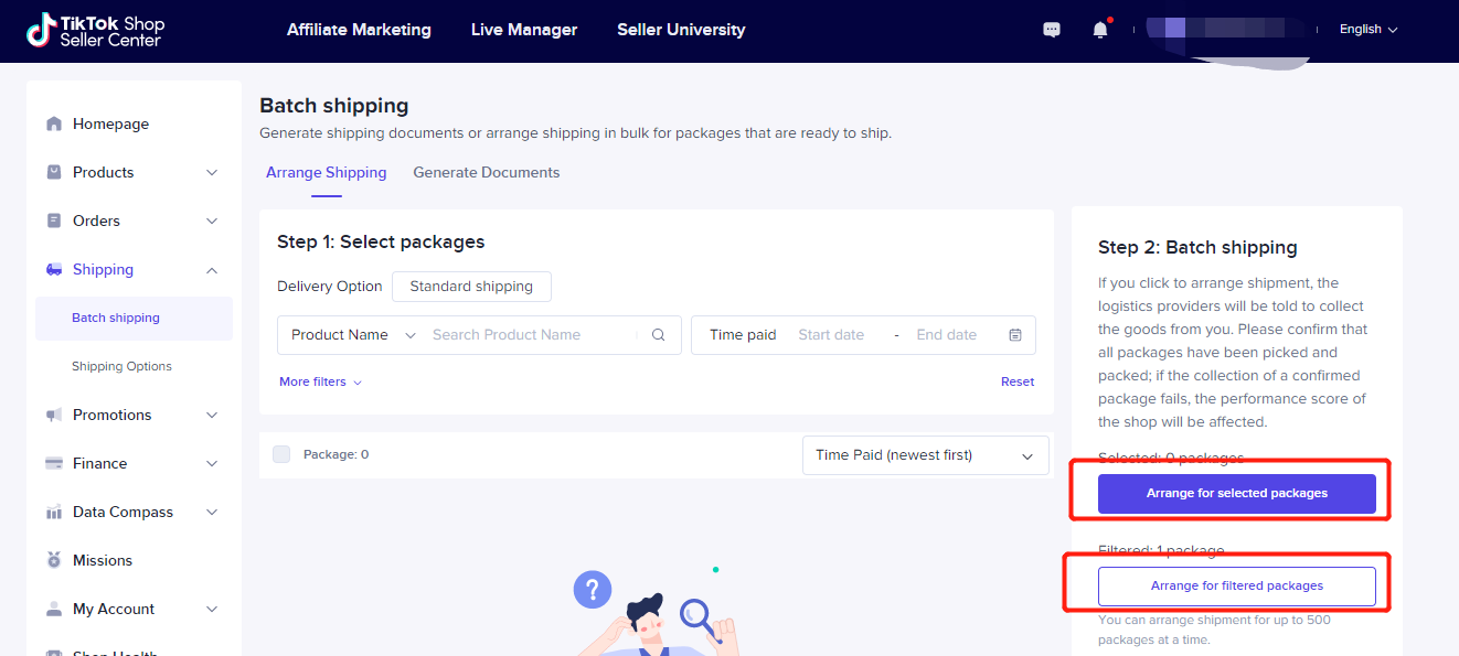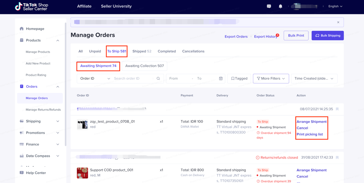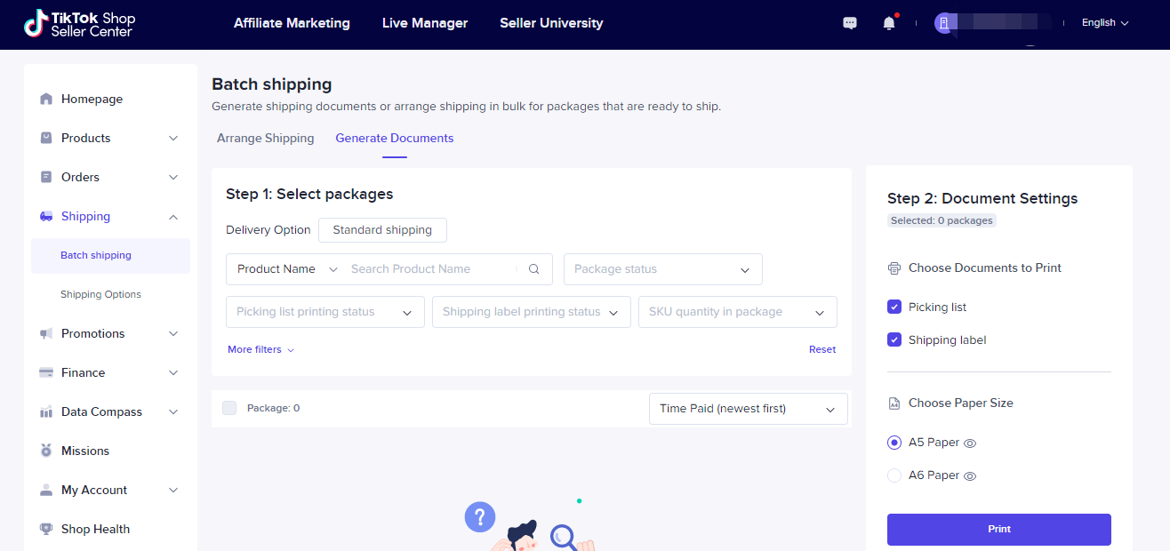 To increase your processing efficiency, you can process your TikTok orders in bulk. You can go to TikTok seller center > Shipping > Batch Shipping. You can prepare the order and print picking list and shipping labels in bulk.