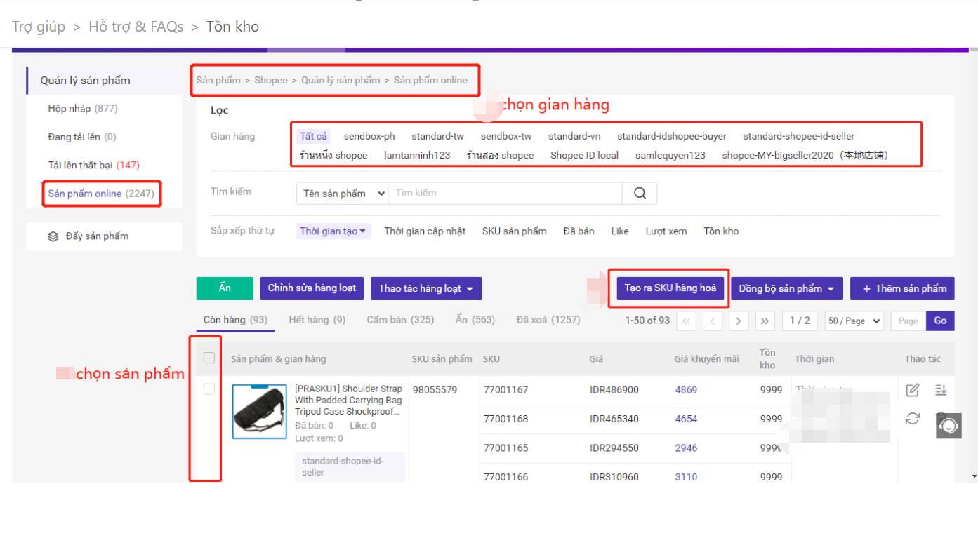 1. Dựa vào SKU gian hàng để tạo ra SKU hàng hóa bằng 1 click chuột